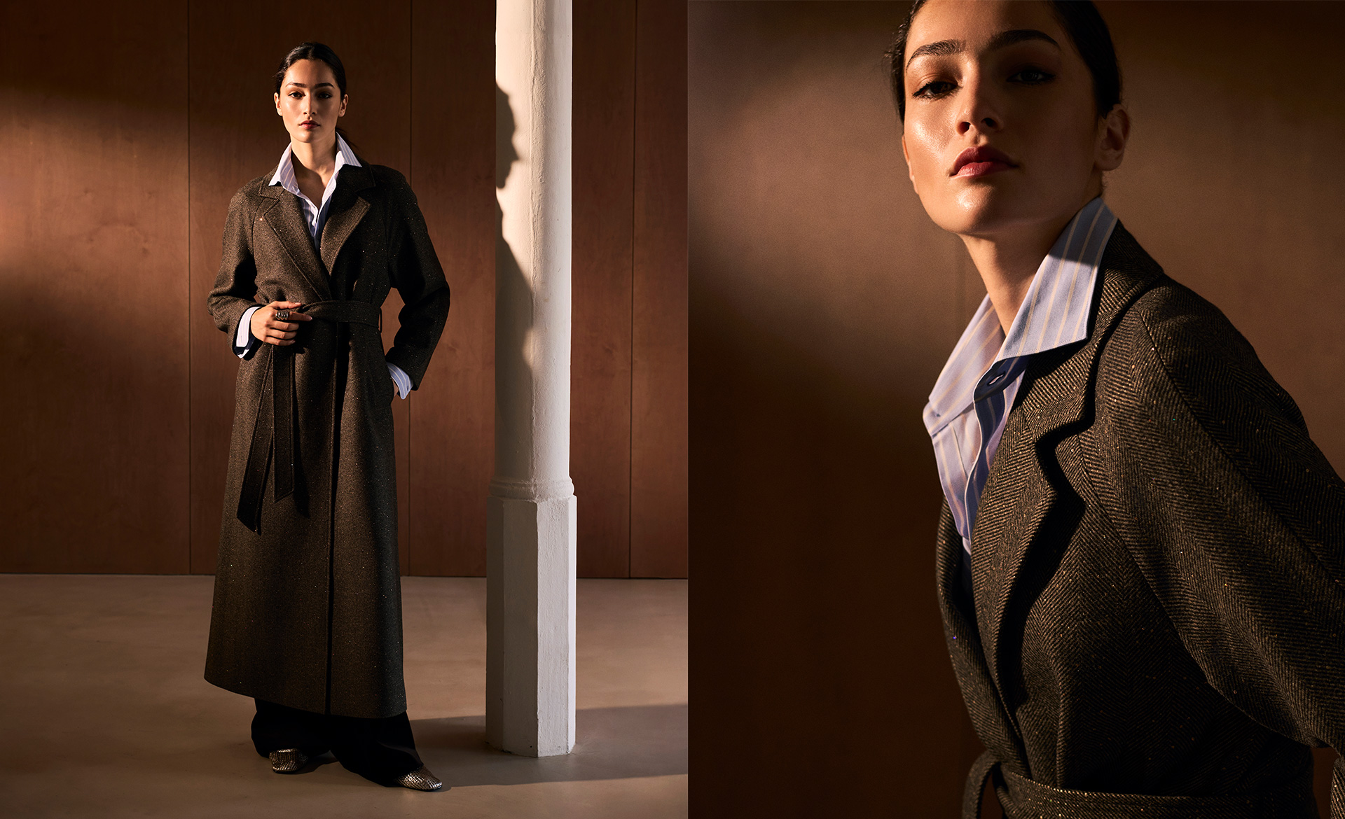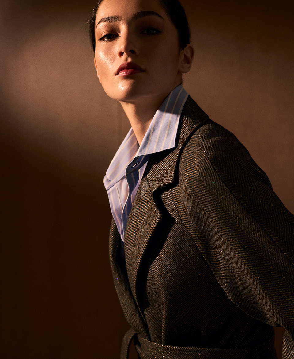 La elegancia que nace de la calma, que encuentra la belleza en lo que permanece. Una invitación a redescubrir la fuerza de lo esencial: prendas que hablan de personalidad, de autenticidad, de un estilo que no busca destacar, sino trascender en el tiempo.
