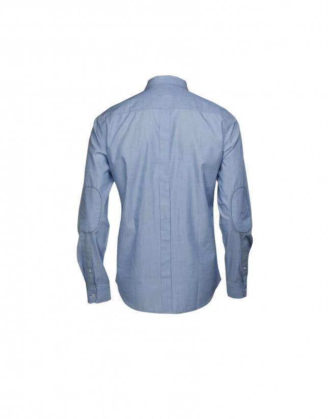 Blue casual shirt in 100% cotton. Long sleeve, one-button cuff with combined fabrics.
