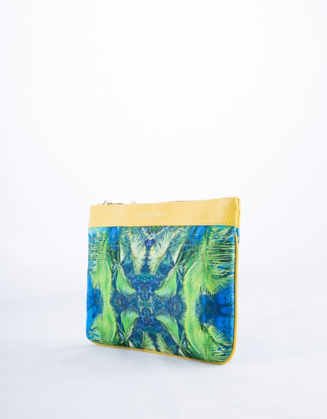 Yellow leather and tropical print fabric Zoe Miami clutch bag