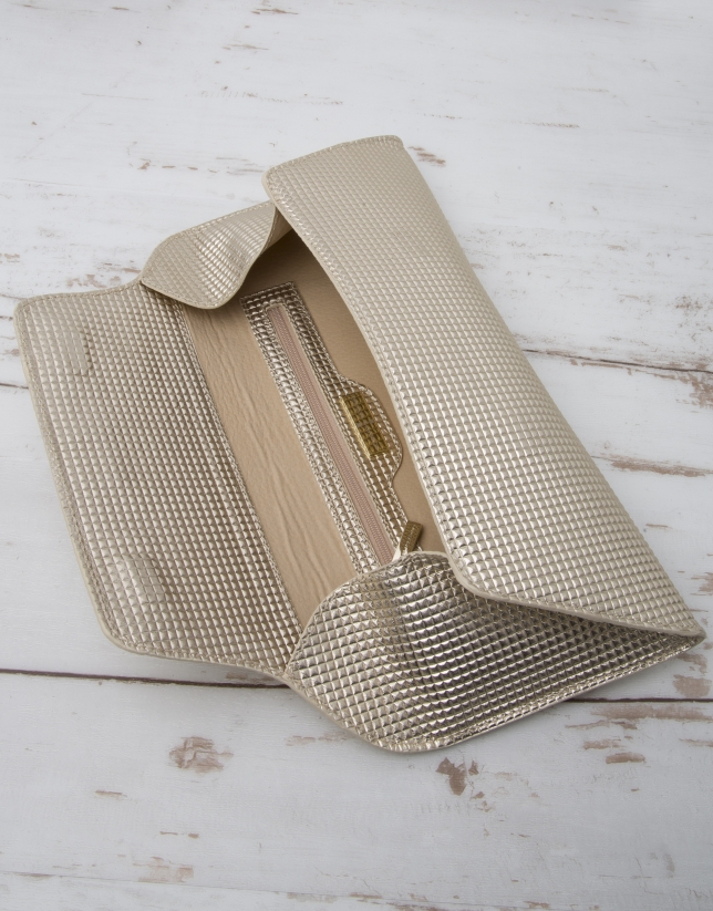Women's platinum Martini Laminato cowhide bag with plaque embossed with small squares, snap and RV logo on gilded RV logo. Size: 33 x 13 cm.