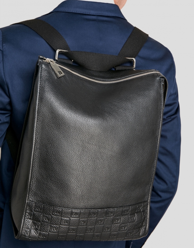 Men's black leather backpack