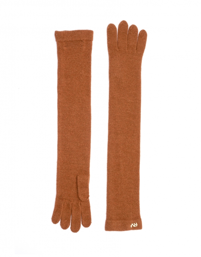 Terra cotta light knit gloves with RV metallic plate. Made in Italy