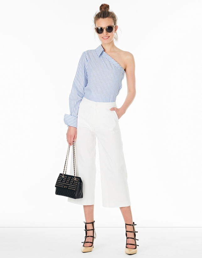 Hazelnut culottes with side pockets with flap and clasp and concealed zipper.
