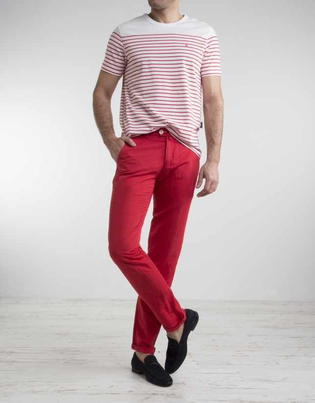Red / white sailor striped cotton top.