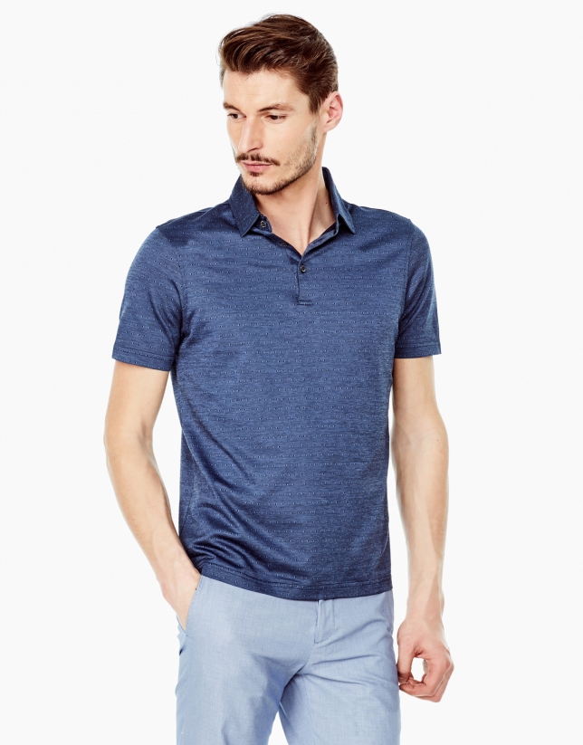 Navy blue microprint striped short-sleeved, 100% cotton polo shirt with straight cut, classic collar and RV embroidered on breast.