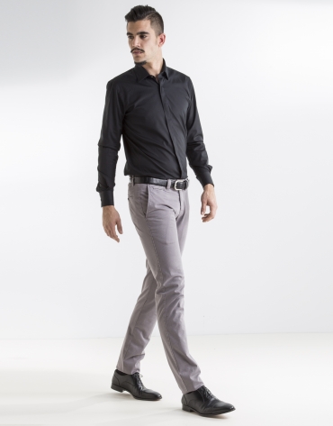 Slim fit black poplin button down front man shirt.