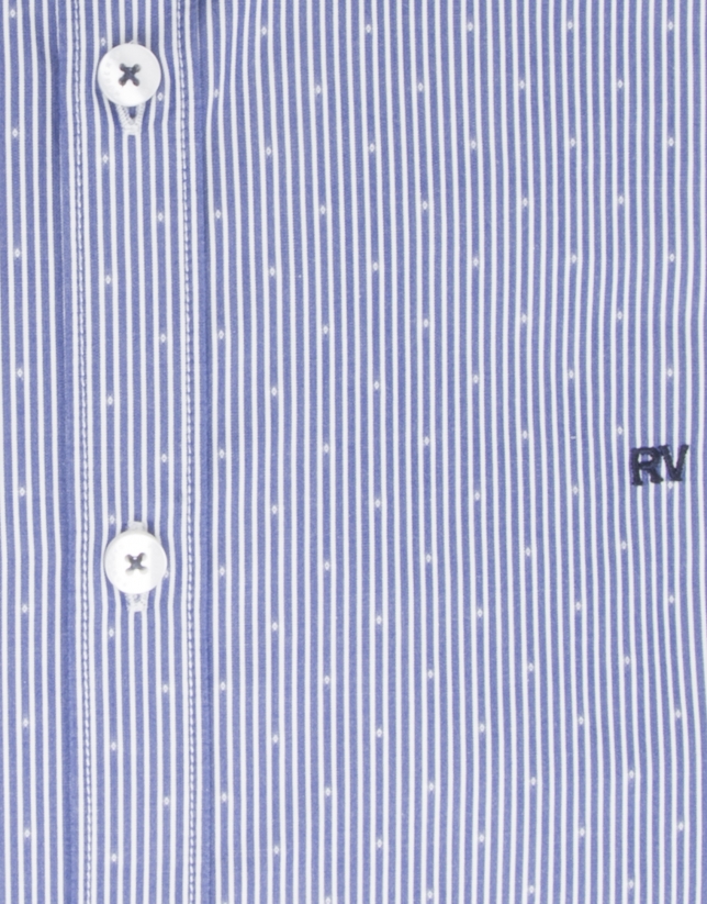Dark blue and white pinstripe Italian cotton shirt with a subtle white diamond design, concealed button down collar and long sleeves. Regular Fit.