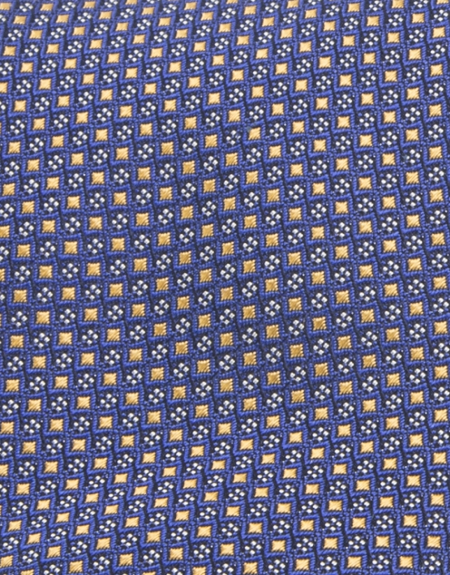 Blue silk and yellow jacquard tie which adds a bright touch to any look.