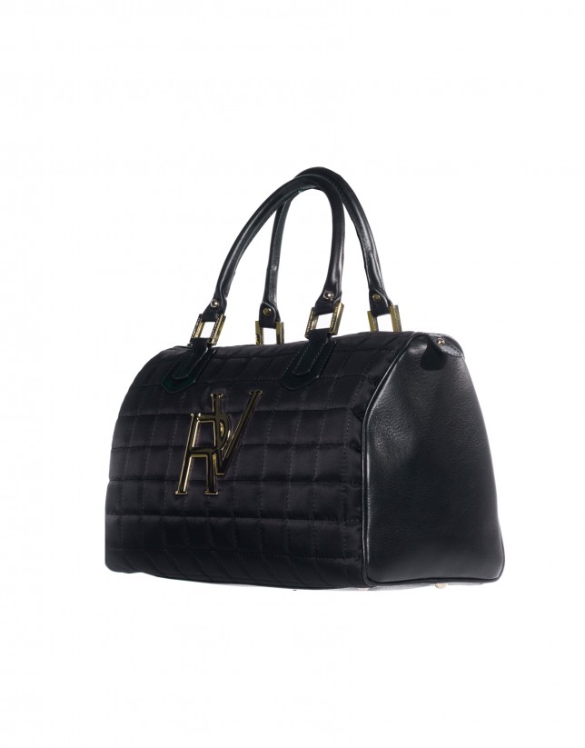 Bolso bowling en textil-vacuno, acolchado en negro. Sport ciudad.
