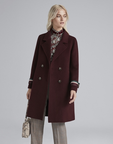 Camisa de corte fluido confeccionada en un tejido con estampado floral en granate. Cuello tira con detalle de hebilla y cinta de terciopelo. Manga larga con puño clásico y canesú en espalda.