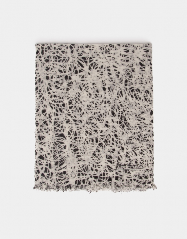 Fular de lana crudo con estampado negro. Medidas: 70x200 cm